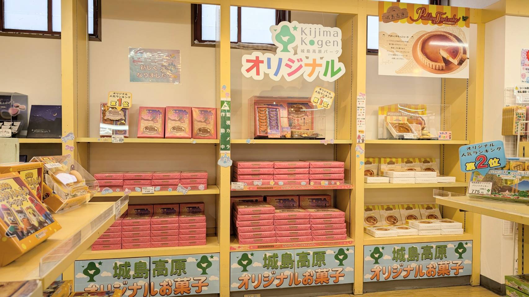 城島高原オリジナルのお菓子やグッズ、大分で人気のお菓子、お漬物、焼酎等お土産にぴったりの商品をたくさん取り揃えています。