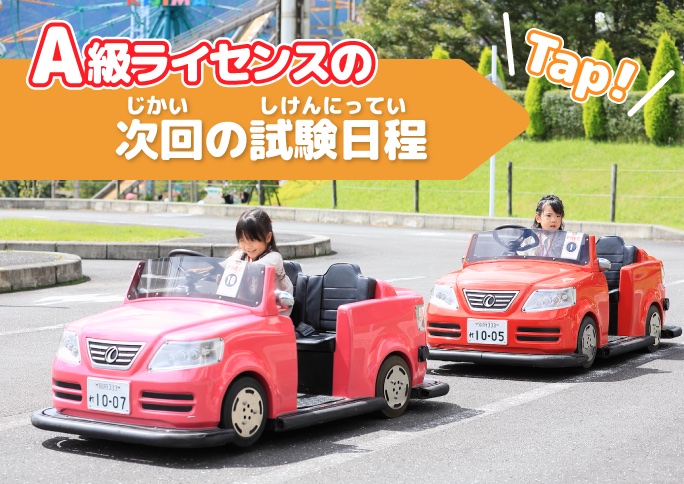 一日の受講者数には限りがございますので、ご入園後キッズ・ドライビング・スクール入口にて早めの受付をお願い致します。定員に達し次第、受付終了となりますので、予めご了承ください。尚、一般講習については、お電話・メール等での事前予約は出来ません。A級ライセンスの受験は事前に、電話予約をお願いします。