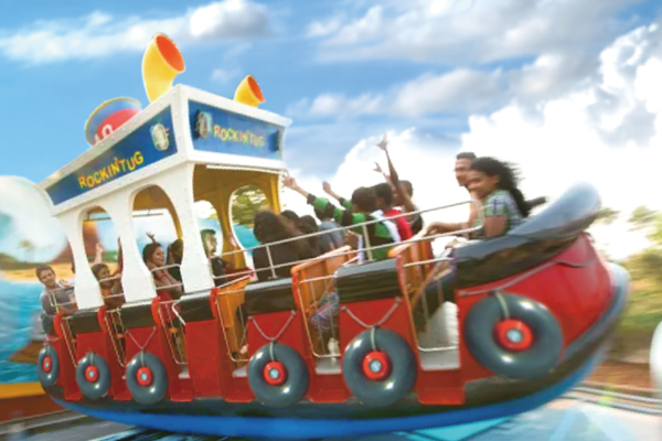 荒波をイメージしたレールの上を、タグボートに乗って左右にスイングしながら横回転します。
